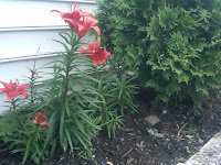 Jeff helped earlier in the week to pull out one last stubborn tree root (with Zach’s tractor), so there is no more barrier to continuing the stone wall building project – except finding the extra time. Also weeded the flower beds alongside the house, where the lilies started blooming.