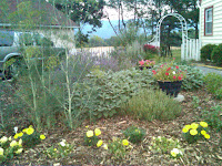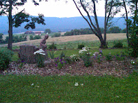 The huge pile of wood-chips we had gotten from the electric company when they were cleaning out the powerlines shrunk a lot the days before the pig roast. Sammy, Anja and Tina worked like crazy weeding and mulching the last flower beds around the house in time for the pig roast. The mulch did make everything look so clean: