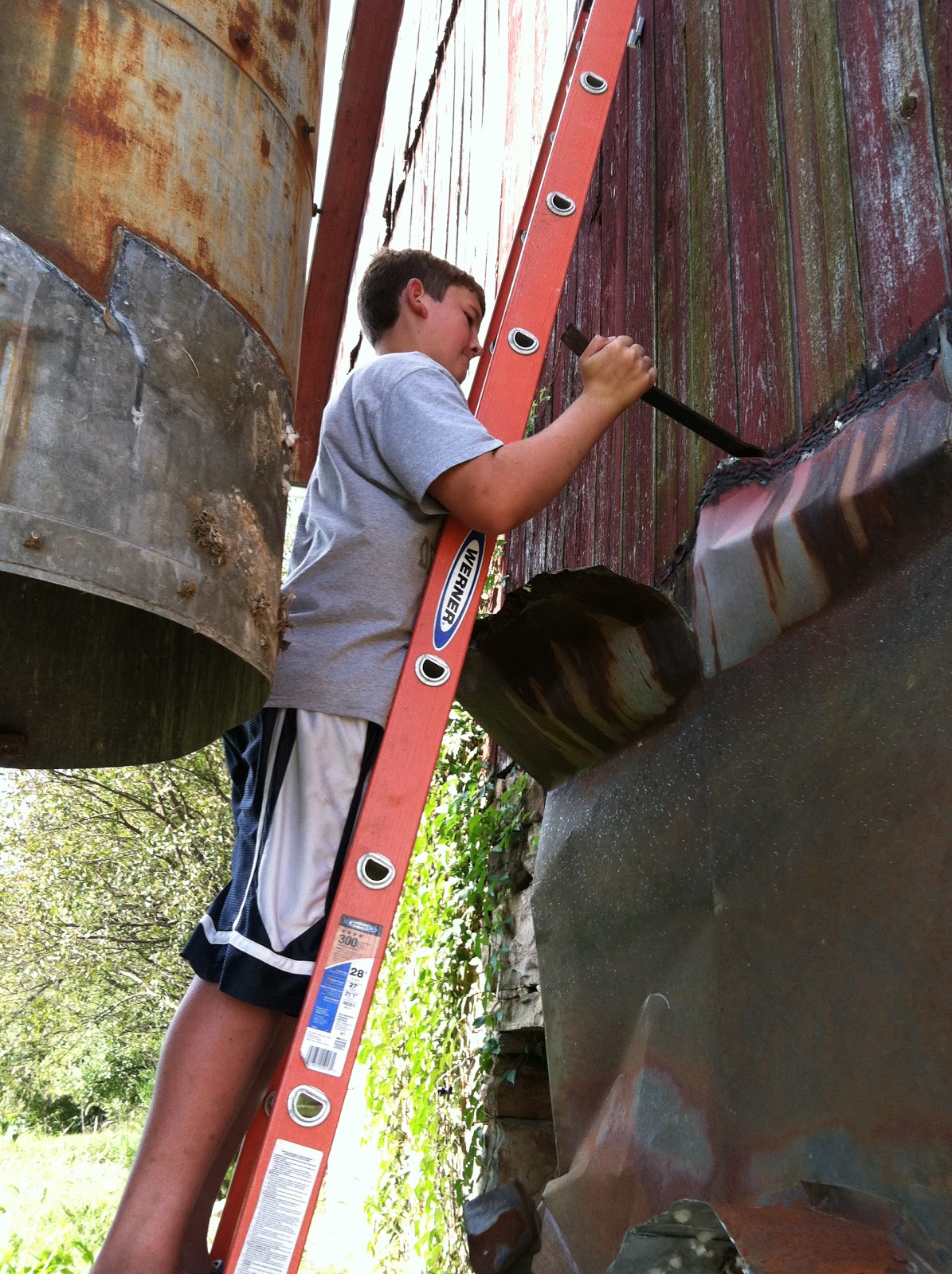 On Sunday, we tore down the rickety old connection between the barn and the silo. This must have been built to keep the silage dry in bad weather (and the person getting it). It was a real eye-sore and we have not need for it. We won’t use the silo for feed – not quite sure yet what we will do with it at this point. It could be used for storage, we could even build ceilings and stairs. Actually saw some pretty neat silo to house conversions on the internet . Here is one example: http://www.youtube.com/watch?v=SmrF3er7zus