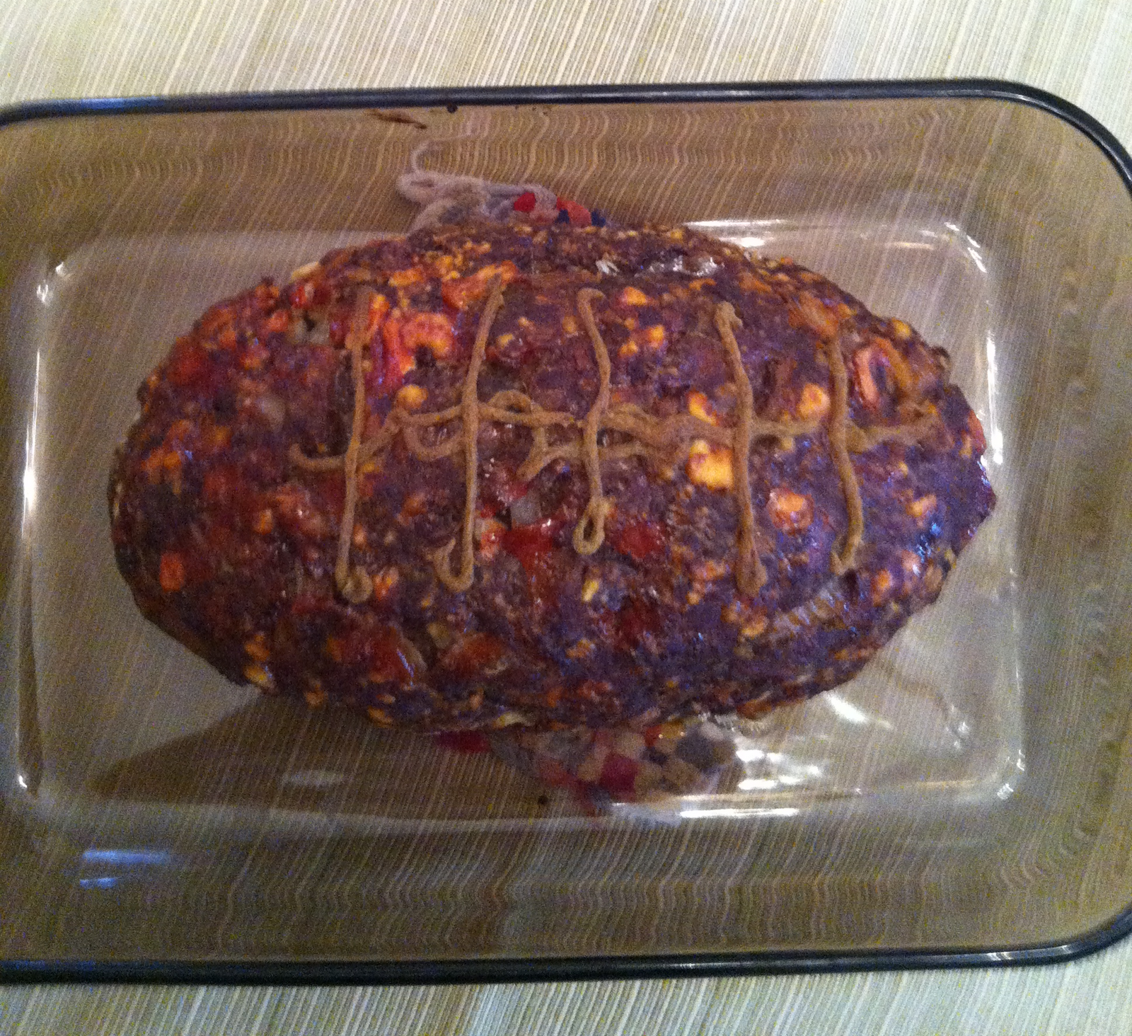 To celebrate the first win of the season for the Big Spring 8th & 9th grade team, Jeff made his special meatloaf for Lars, and Sammy had the bright idea of shaping it into a football. She even added the lacing by using mustard before baking.