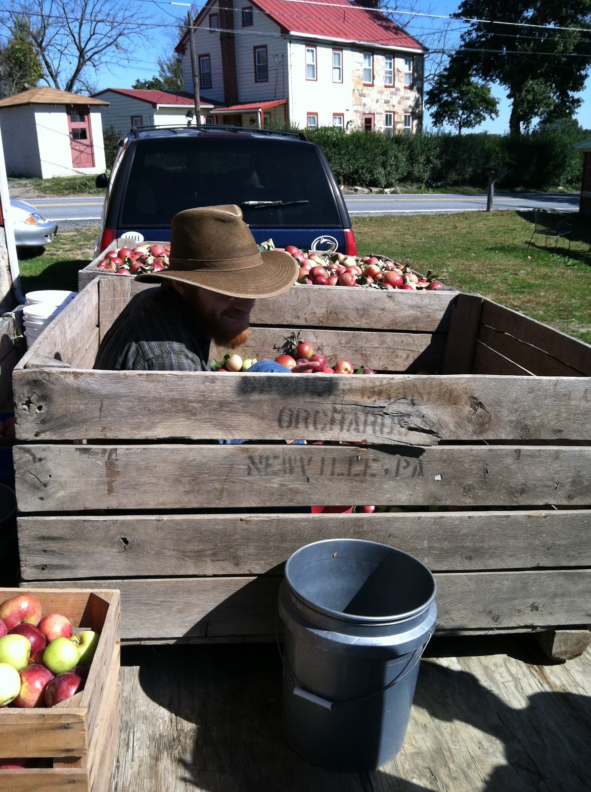1. Start with 50 bushels of mixed apples from a local orchard – second grade/juice grade (meaning they are smaller, not very uniform, but clean and worm free)