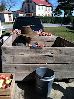 - Getting apples off wagon into 5 gallon buckets (removing leaves if necessary or sorting out the occasional rotten apple) – this involves eventual crawling into the large bin to reach the bottom apples