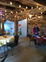 Rachel arrived with a complete birthday party in a crate! Favors, decorations and games galore. All we had to do was clean up the barn to get ready.