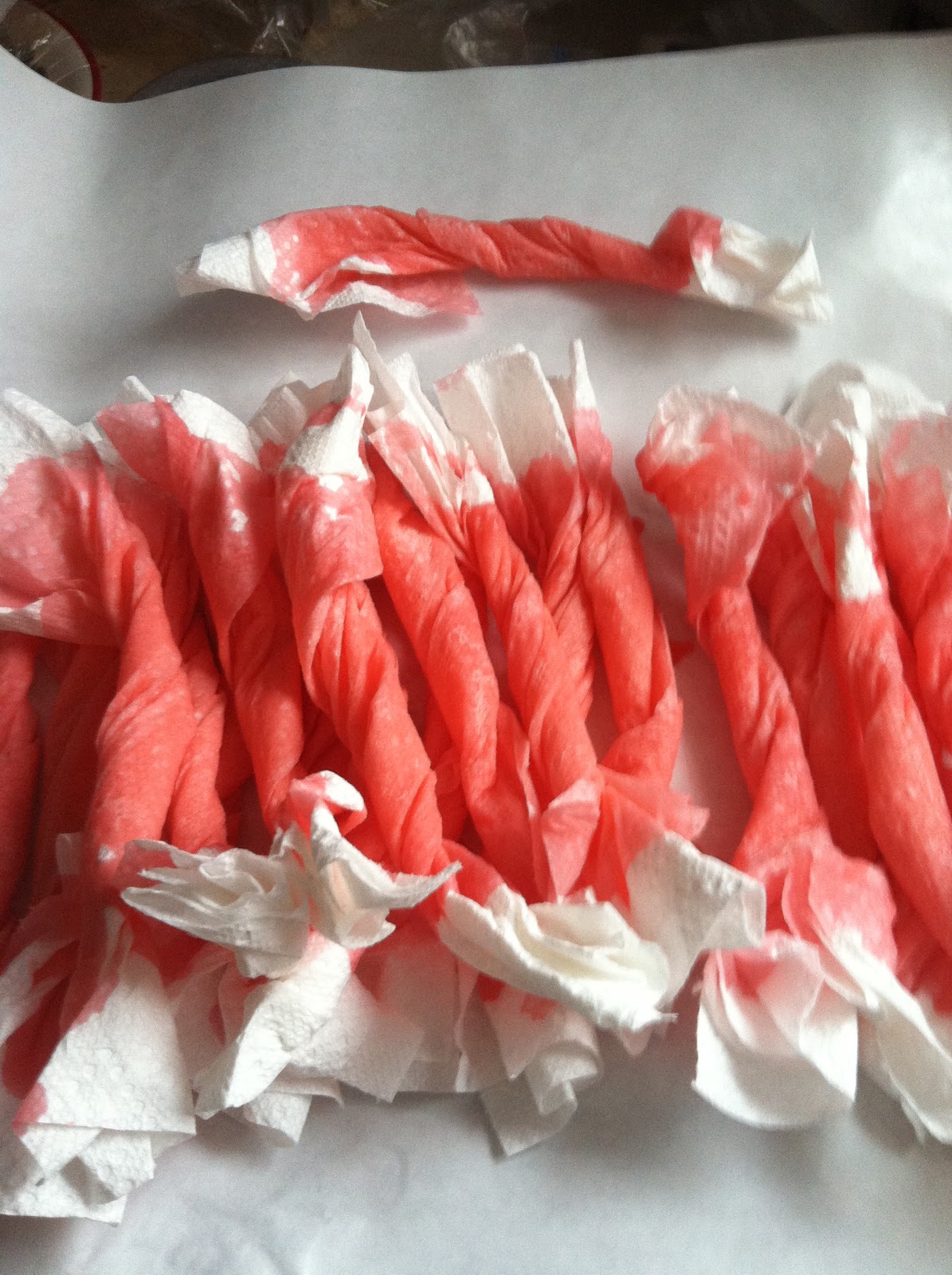 We’ve tried lots of different ways to start fires, from soaking dried pine cones in hot wax to using a blow torch…but the best way we found to get our wood stove fire going is to make simple fire starters out of old candles and paper towels. We burn a lot of candles, especially during the holidays, and we always save the left-over wax. Come winter time, we melt the wax in a pot on our stove, using a low setting for the burner. When all the wax is melted, we use single sheets of paper towels, which we twist to form sort of a rope, and quickly dip these into the melted wax. We then lay them out to dry on freezer paper (or aluminum foil). Once they are dried, we store them in a bucket or bag until we need them. We still use a blow torch to get a fire going, but the wax soaked paper keeps the flames going for a long time, enough to get the kindling pieces burning.