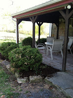 We transformed the back porch from its winter purpose of covered fire-wood storage back to our summer sitting area – complete with flowers and mulch. That took some serious muscle, as left-over firewood had to be moved back to the wood pile and re-stacked. We scrubbed and swept until it was “back to normal” and then brought out the patio furniture.
