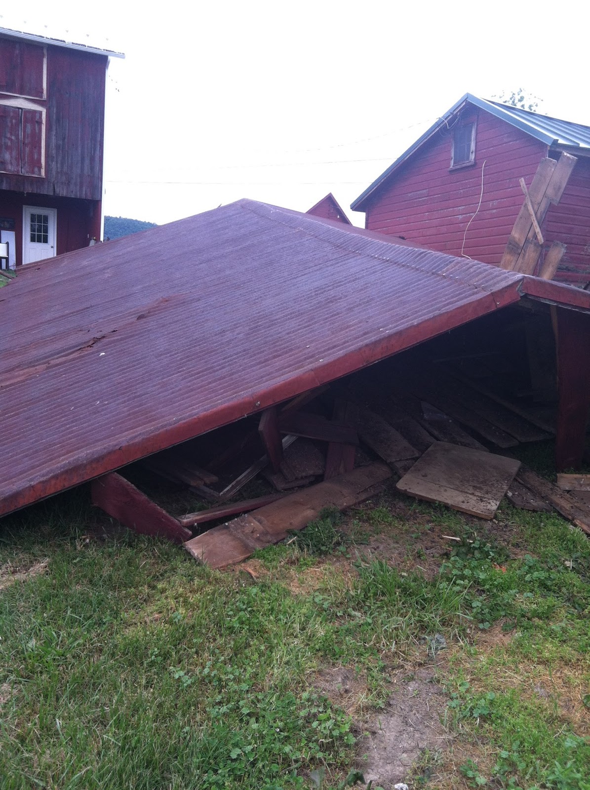 We finally tackled the big tear-down project: the old goat pen. The goat pen is basically a miniature barn, with a hay loft on top – but the goats got everywhere, and left their droppings everywhere as well. This building has always been beyond repair, and even our homeowners insurance does not cover it. We thought the three day weekend would give us plenty of time to tackle the project, except that we also had to prune 700 grape vines and plant the second patch of corn.