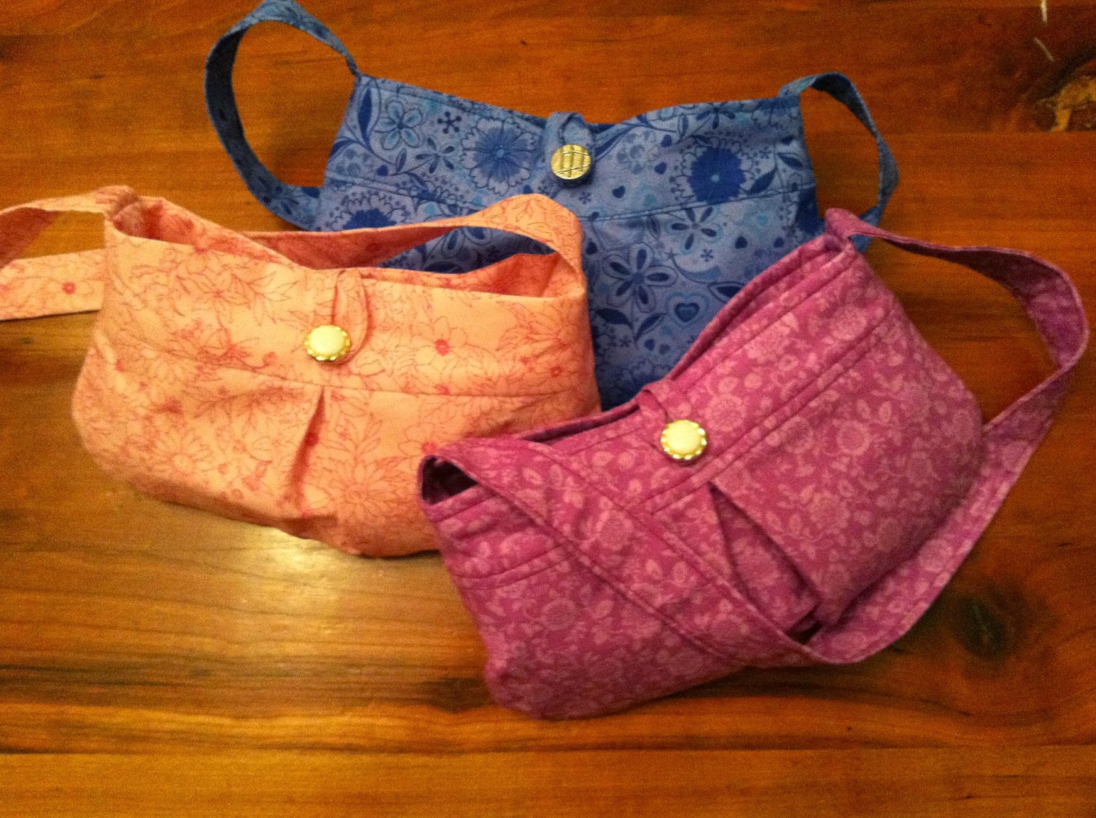 I found the pattern online, at a great website called “Make It & Love It” and used fabric remnants I had on hand. This turned out to be so much fun, that I figured even the younger, infant granddaughters could use purses for later, as could 3 “grand-nieces” and daughters of friends. What started out as one purse project, ended with eight little purses – all lined with shimmering satin fabric and little button closures.