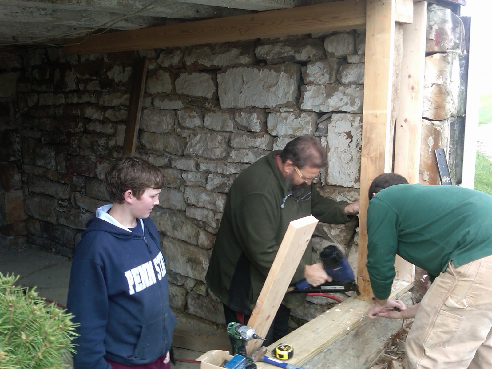 • Jens, Jeff and Lars worked mostly on rebuilding barn walls, putting up the “deck” railing and moving debris