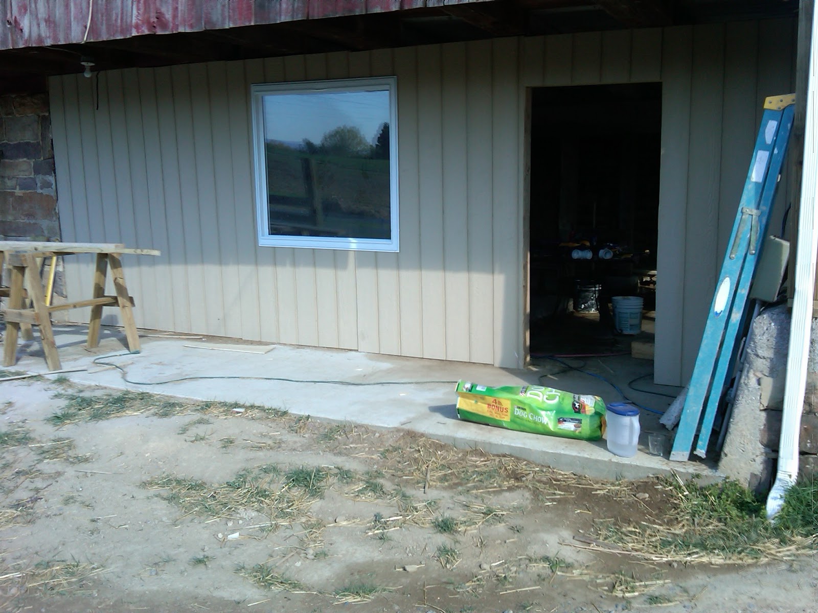 What a crazy and productive weekend we had – and still found time to celebrate Easter!  Our barn underwent a total makeover, including new windows, new walls, new “deck” and new landscaping.  Plus we planted over 50 pounds of potatoes, mowed and weeded, painted fences, moved stacks of lumber and fitted a wedding dress.  All because we had so many helpers: