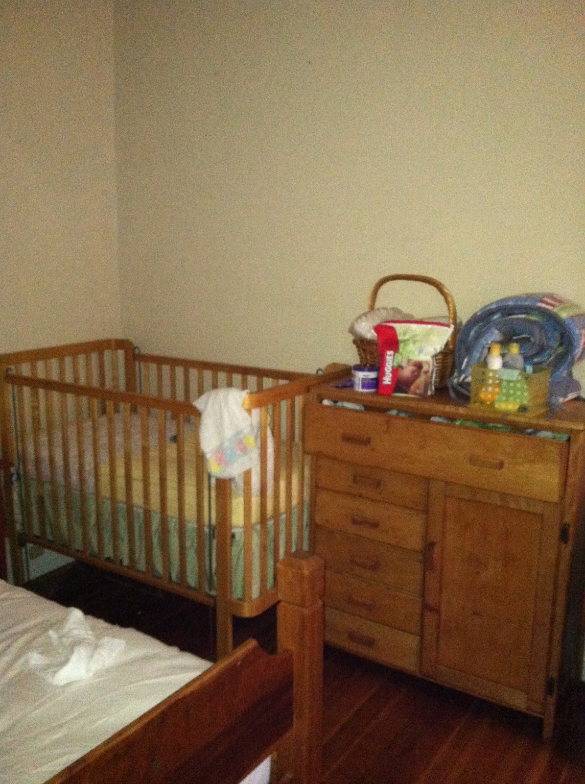 Part of getting ready to help Anja and Duff move to Boston was keeping a very old promise: to refinish our old baby bed and strip and finish a baby dresser. Somehow, in the middle of picking blackberries, I had forgotten that I was to do this – and was gently reminded to not forget to bring the baby bed and dresser along for the move. OOPS! With less than a week to go, Jeff disassembled the crib, sanded it down, reglued and reassembled the entire bed, so that Tina could apply several coats of polyurethane. At the same time, Tina stripped 3 layers of old paint and old stickers off a baby dresser which probably was made in the 40’s or 50’s (judging from the looks of the old stickers under the coats of paint). Both pieces of furniture got several coats of polyurethane. The last two coats were wet-sanded, meaning the polyurethane was applied with 400 grit sandpaper. We just had enough days – luckily the moving “party” arrived one day later than planned on the way from Pittsburgh to Boston – and both pieces made it onto the truck for delivery.