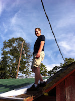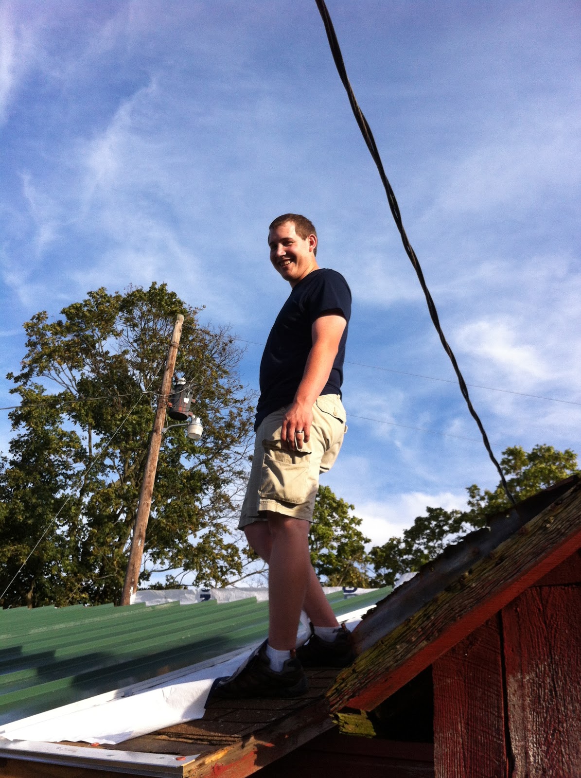 Jens and Zach were both around to lend a hand on Saturday, which speeded up the process a lot. Of course with the 3 boys around, there was also some goofing off….especially when it came to teasing Tina (who does not like to work on roofs)