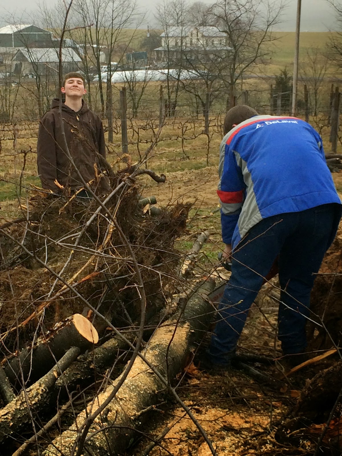 Jeff had the brilliant idea to try and make his own maple syrup ever since he saw the sugar maple trees on Zach & Rachel’s Farm.  So he researched the process in more detail, ordered the necessary supplies (tree taps, hoses) from Amazon…yes, they have that too! And we bought some more food grade buckets with lids.  Then Jeff and Lars tapped 5 trees, hooked up the hoses and started collecting sap in the 5 gallon buckets.  They checked the buckets every day and over the course of 2 weeks collected nearly 100 gallons of sap.