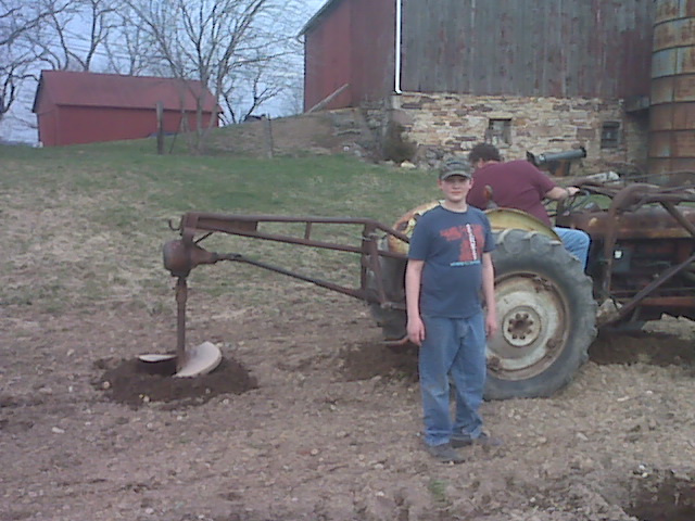 Spent time this weekend marking off the grape patch for the soon to arrive chambourcin vines and drilling holes (used the biggest auger we have for the tractor)…this is a rather slow process, but it will be worthwhile having the large holes for easier planting. We are making the holes 6 feet apart, and the rows are 10 feet wide. (5 rows of 40 grapes)