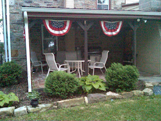 The huge pile of wood-chips we had gotten from the electric company when they were cleaning out the powerlines shrunk a lot the days before the pig roast. Sammy, Anja and Tina worked like crazy weeding and mulching the last flower beds around the house in time for the pig roast. The mulch did make everything look so clean: