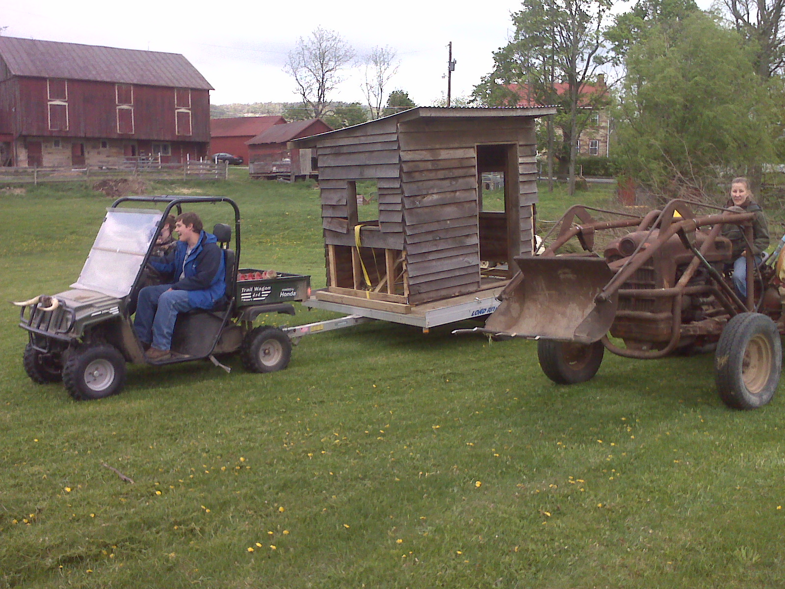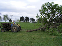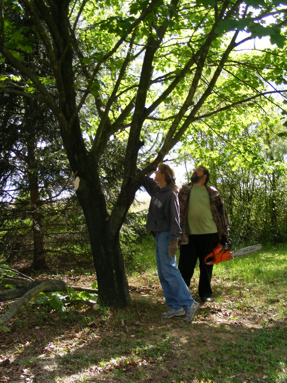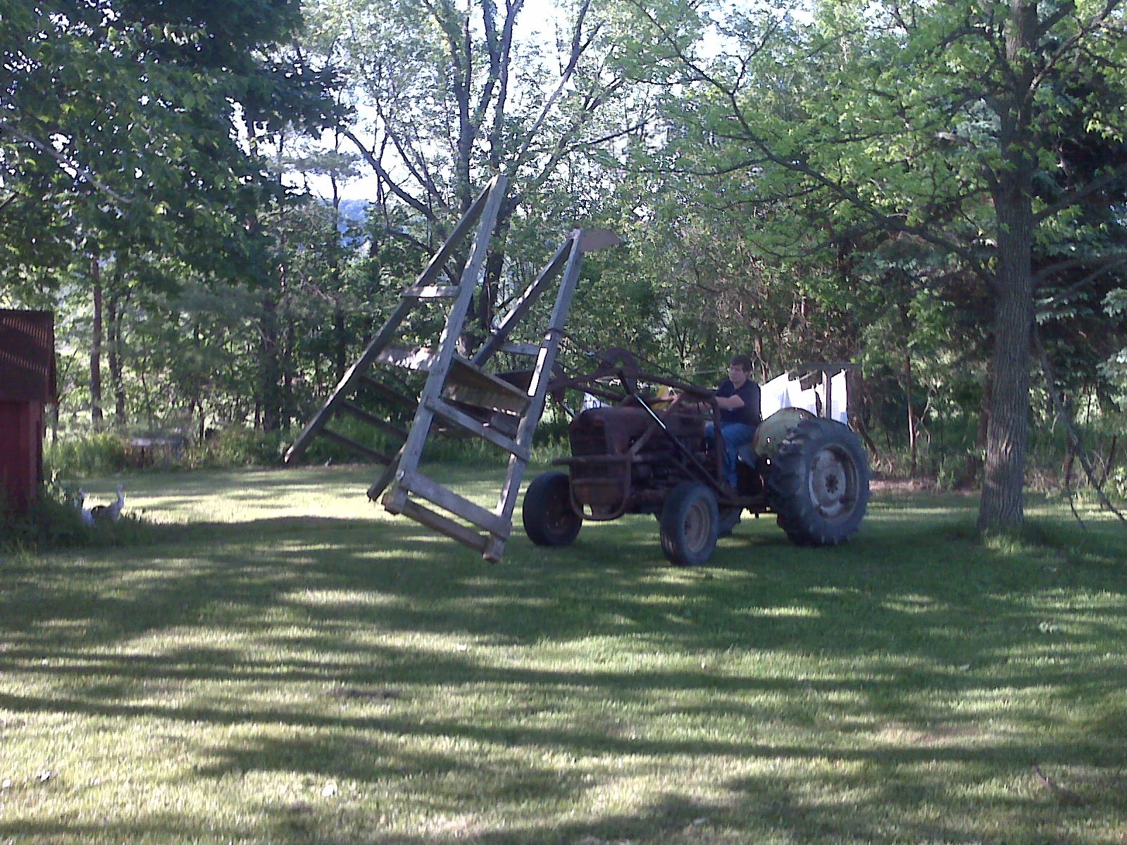 We also killed a lot of poison ivy and continued cleaning out the willows around the pond. Late Sunday afternoon, Zach decided to set up the swing set – it was in pieces and had to be moved into place with the tractor. We got it all set up between two large trees in the back yard, near the ‘future play house’ (an old chicken coop that Sam worked on cleaning our for a couple of days already)
