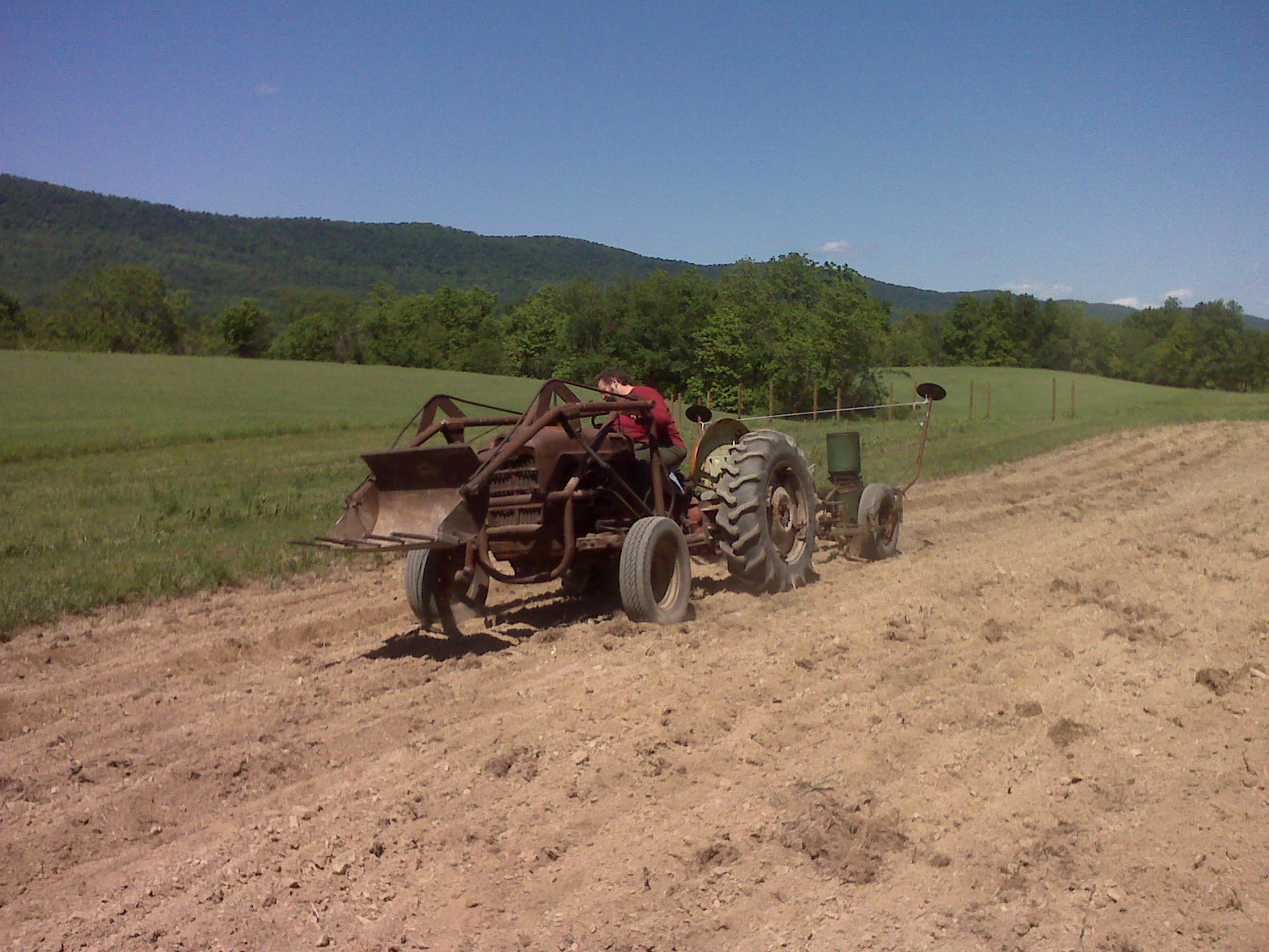 Last weekend Jeff planted corn – two pound of Silver King (we think) – this was seed we had left over from last year, so we’ll have to see how it germinates. He planted this on the lower field – next to the blackberries in the back of the property. Jeff had ordered new parts for the fertilizer bins of his corn planter – they worked like a charm, saving us a lot of time!