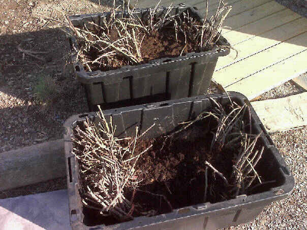 Late Tuesday afternoon, the UPS truck pulled into our driveway and delivered 2 huge boxes of dormant blackberry plants. After reading every article, website posting and advertisement and re-reading the Mid-Atlantic Berry Guide all winter long, we had finally decided to start off with the Apache variety.