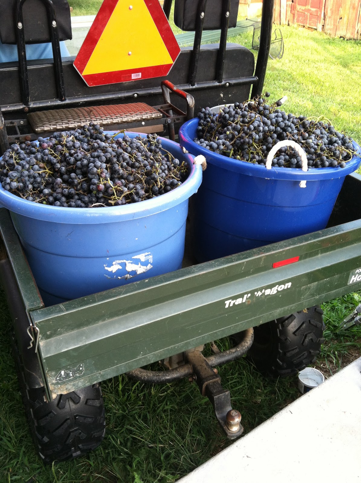 We’ve been keeping a close eye on our first Chambourcin harvest. Since this is only the second year for the grape vines, we removed all grape clusters, except one, from each vine during early spring. The grapes have been growing beautifully and we’ve been testing the sugar content every couple of days. Our plan was to wait at least until Labor Day weekend….but our plans did not work out.
